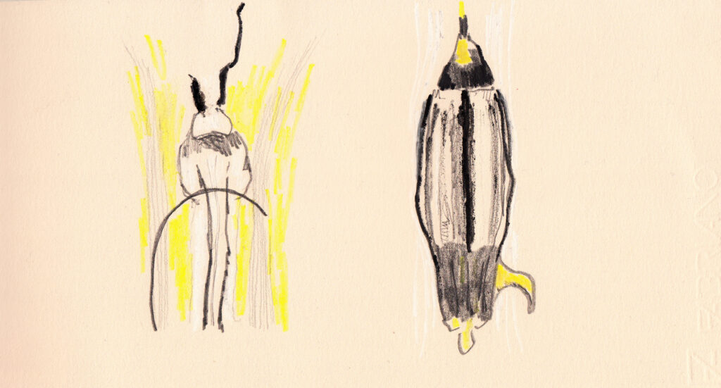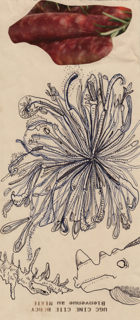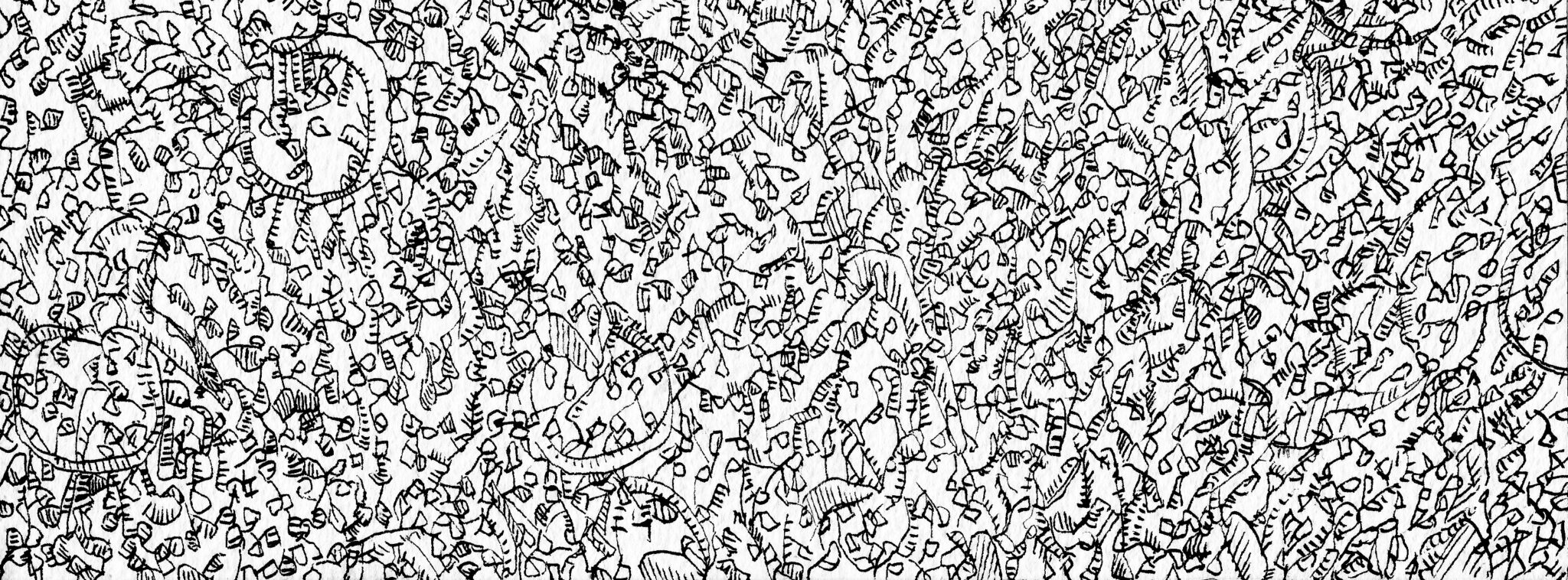 “Aux” Encre à la plume sur papier 10×25 cm, 2012