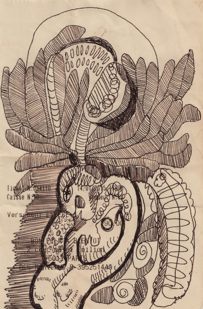 Projet BD 2012-2027 - Originaux, stylo bille sur tickets de caisse